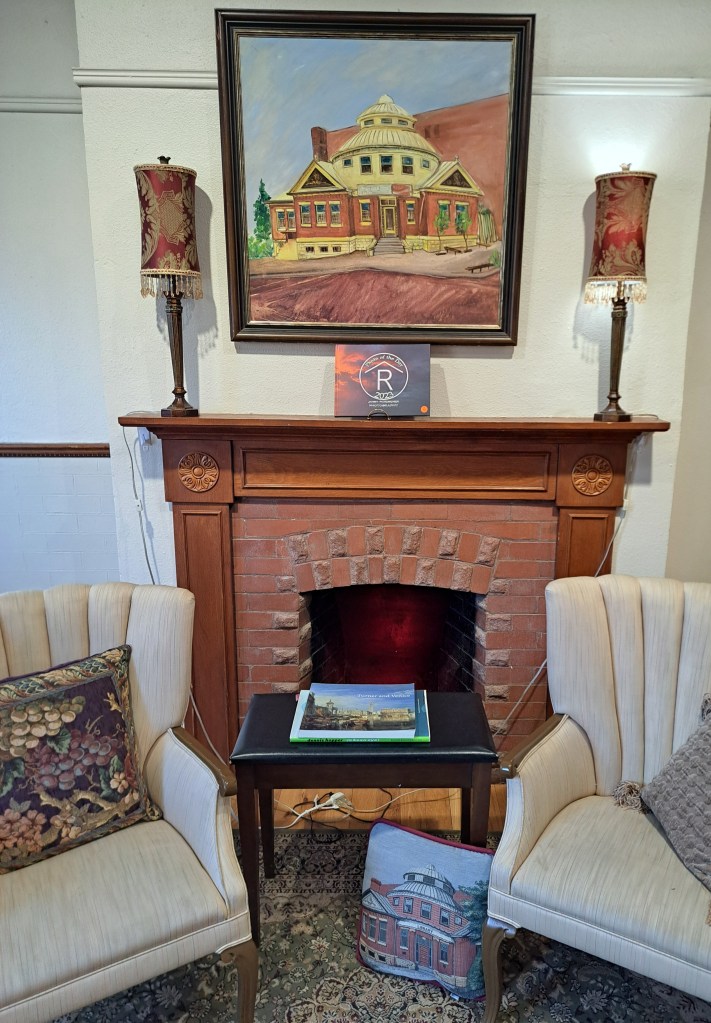 The building features a unique round, second story. Visitors are invited to explore this fascinating