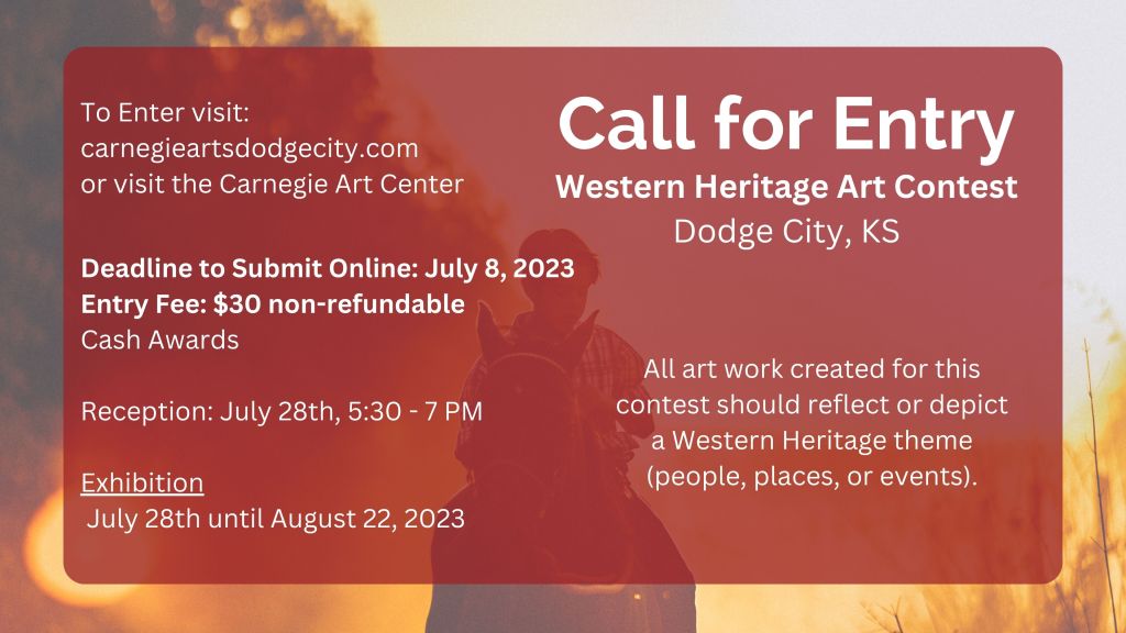 Payment and entry form can be submitted by visiting the Carnegie Arts Center or online at: http://www.carnegieartsdodgecity.com